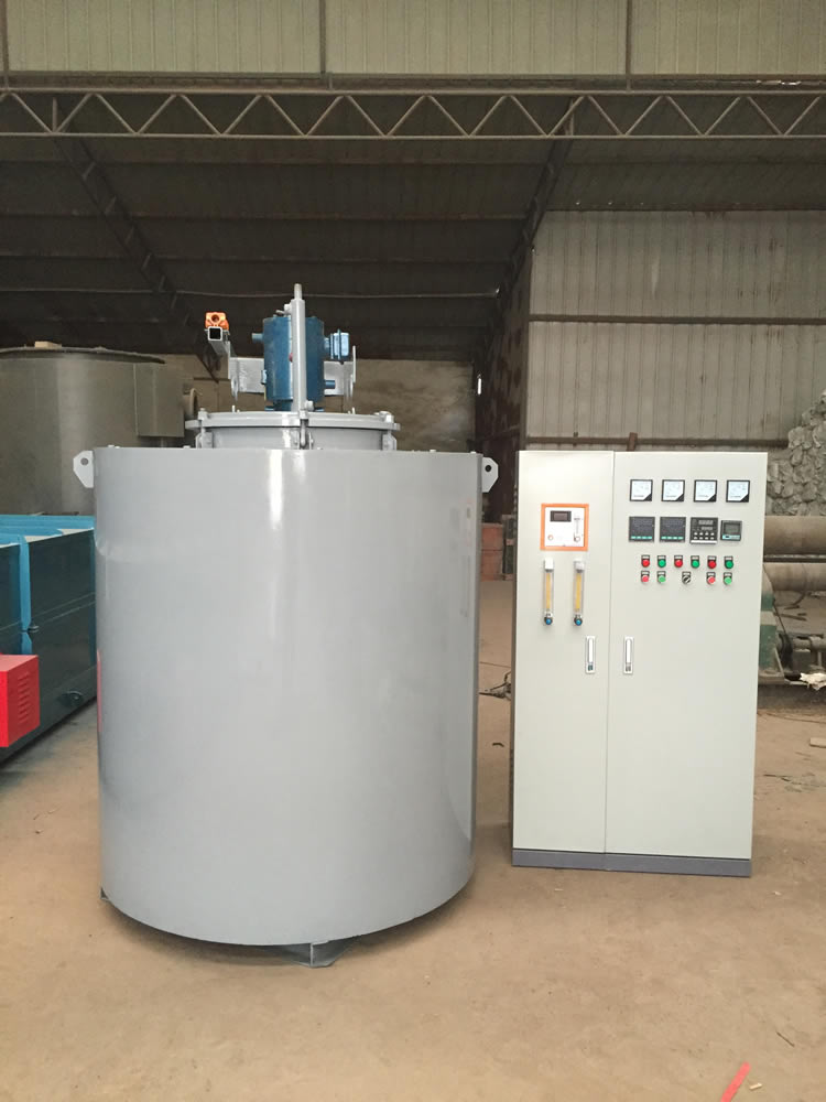 RN系列井式氣體氮化爐是由鋼板做成筒狀外殼,里面是由定形的標(biāo)準(zhǔn)耐火磚砌成的加熱工作室,在加熱室和外殼之間填滿了保溫材料(新型節(jié)能見后面簡(jiǎn)介)。加熱室中有一不銹鋼焊接的密封爐罐,爐罐上部裝真空橡膠密封圈,下部為水冷套,爐蓋頂部裝有均熱風(fēng)機(jī),保證了爐內(nèi)氣氛的均勻。